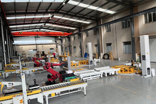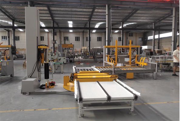 該線(xiàn)體涵蓋紙箱的開(kāi)封箱機(jī)、自動(dòng)裝箱機(jī)、自動(dòng)供棧機(jī)、碼垛機(jī)器人、在線(xiàn)纏繞機(jī)、輸送機(jī)等6大單元,三線(xiàn)并行,實(shí)現(xiàn)了全無(wú)人化操作,是完整的全自動(dòng)化包裝流程典范。